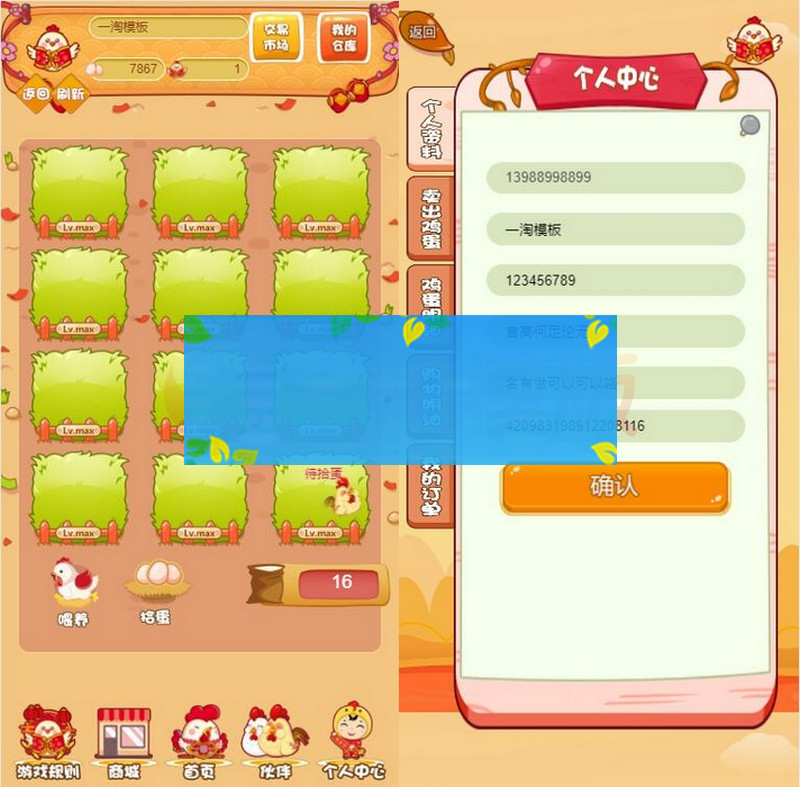 牧场养殖养鸡游戏,母鸡可以下蛋,鸡蛋可以买卖,游戏里自带交易商城,具体的玩法和规则游戏里面有介绍。和那些区块链的模式差不多,母鸡下蛋产生收益,喂养需要饲料,自带推广,短信接口现在自带的有,并且还可以用。有想换的话也可以自己换。